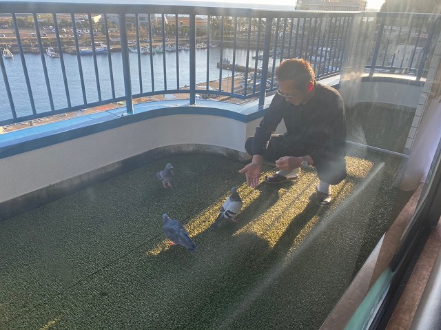 おせんべいを細かく割ってあげたら手にまで寄って食べていました。